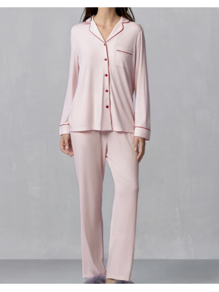 Elevate your wardrobe with our stylish Milk Fiber Collection Pajama Set. This set includes a classic collared long-sleeve cardigan that adds a touch of sophistication to