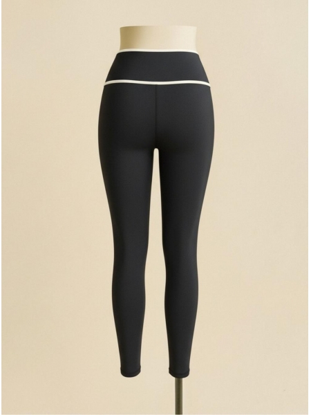 The power of precision detailing — a single slim white stripe tracing the upper edge of the waistband is all it takes to transform these sleek black leggings from a wardrobe basic into a refined style statement. The deep black compression fabric wraps the legs in a smooth, matte finish that creates an unbroken, elongating line from hip to ankle, making every silhouette look sculpted and confident. The substantial high-rise waistband delivers firm, all-day core support while the delicate ivory trim at its top edge adds a sophisticated contrast that pairs beautifully with both monochrome and colorful tops. Four-way stretch construction ensures unrestricted mobility during running, weightlifting, or flow yoga, while the sweat-wicking finish keeps you fresh and comfortable from warm-up to cool-down. Understated, powerful, and endlessly versatile.