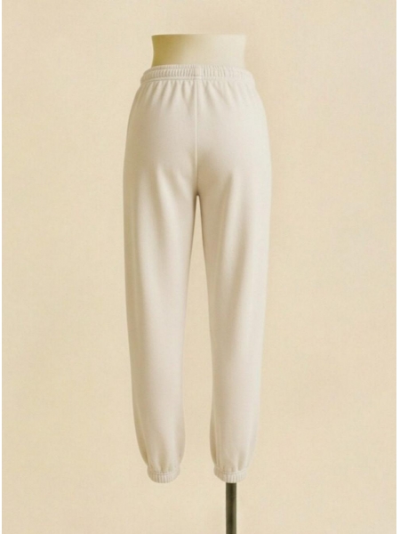 Sink into pure comfort with these cloud-soft joggers in a warm cream tone that radiates laid-back luxury. The brushed fleece interior wraps the legs in gentle warmth, making them an ideal companion for cozy mornings, lazy weekends, or post-workout wind-downs. A ribbed elastic waistband sits comfortably at the natural waist without digging, while a subtle tonal embroidered logo at the hip adds a discreet brand touch that keeps the look clean and refined. The relaxed, tapered silhouette skims the body without clinging, gathering neatly at the ankles with matching ribbed cuffs that complete the polished, put-together aesthetic. Elevated enough to wear beyond the house yet cozy enough to never want to take off — these joggers redefine what effortless dressing truly feels like.