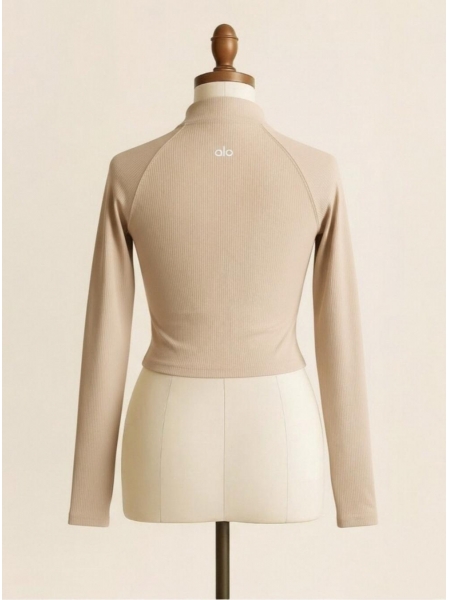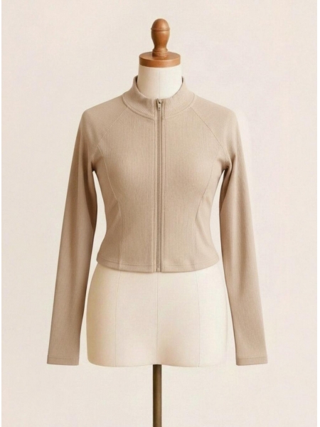 Refined, sleek, and effortlessly put-together — the Sand Dune Ribbed Zip-Up Crop Jacket is the elevated essential your activewear wardrobe has been waiting for. Crafted from soft, stretchy ribbed knit fabric, this fitted cropped jacket features a clean mock neck collar, smooth full-length zipper closure, and flattering raglan sleeves that allow for unrestricted movement. Subtle seam detailing along the torso creates a sculpted, figure-hugging silhouette that transitions seamlessly from studio to street. The warm sandy beige tone adds a sophisticated, neutral touch that pairs beautifully with matching leggings, biker shorts, or casual denim. Whether you're heading to a morning pilates class, a weekend brunch, or a casual day out, this versatile piece delivers the perfect blend of comfort, coverage, and understated elegance.