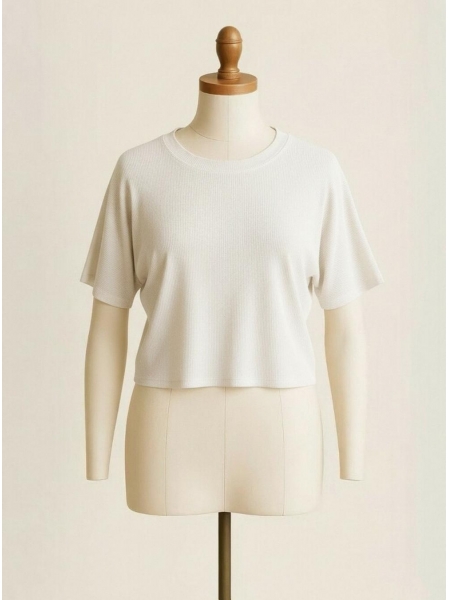 Effortlessly relaxed yet thoughtfully styled, the Ivory Boxy Ribbed Crop Tee is your go-to for laid-back days done right. Cut in a loose, boxy silhouette with wide dropped shoulders and short sleeves, it offers a comfortable, airy fit that never feels sloppy. The soft ribbed knit fabric adds subtle texture and breathability, while the clean crew neckline and cropped hem keep the look fresh and modern. In a soft ivory tone, it pairs beautifully with leggings, joggers, or high-waisted bottoms for an effortless everyday outfit.