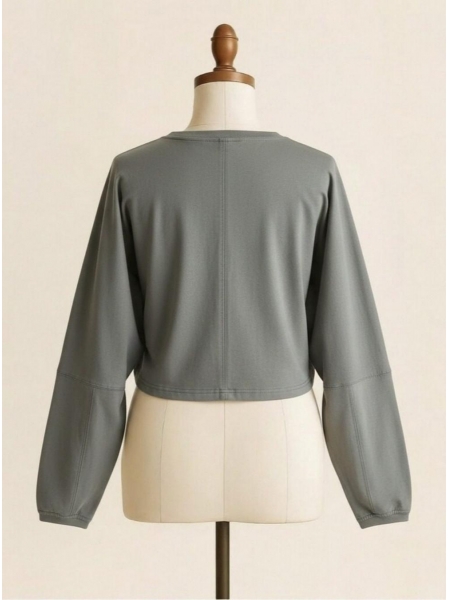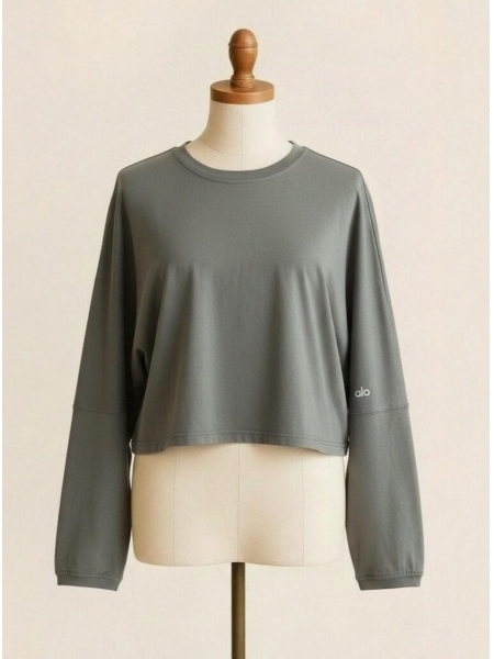 Relaxed, breathable, and effortlessly cool — the Sage Mist Oversized Crop Long-Sleeve Top is your perfect off-duty essential. Cut in a loose, boxy silhouette with a clean crew neckline and wide dropped shoulders, it drapes beautifully without adding bulk. The full-length sleeves feature elasticized cuffs for a snug, polished finish that contrasts the airy body in the best way. Crafted from lightweight, smooth performance fabric in a calming sage green tone, it transitions seamlessly from studio warm-ups to weekend coffee runs. A subtle sleeve logo adds a minimal branded touch.