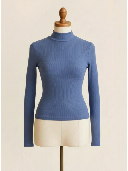 Timeless, refined, and endlessly wearable — the Slate Blue Ribbed Mock Neck Long-Sleeve Top is the elevated basic your wardrobe truly needs. Crafted from soft, stretchy ribbed knit fabric, this sleek fitted top features a sophisticated mock turtleneck collar and slim long sleeves that create a clean, elongated silhouette. The body-skimming fit flatters every curve without feeling restrictive. The serene slate blue hue adds a fresh, versatile pop of color that pairs beautifully with tailored trousers, denim, or athleisure bottoms — a true year-round essential for polished, effortless dressing.