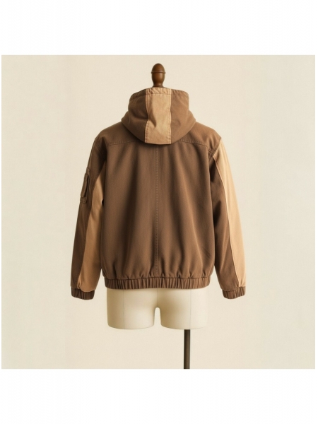 This colorblock hoodie merges style with utility, featuring a mix of rich earthy tones for a contemporary look. Crafted from soft cotton, it includes a cozy hood, adjustable drawstrings, and a functional sleeve pocket. The relaxed fit and ribbed cuffs make it a comfortable choice for layering or wearing solo during cooler days.