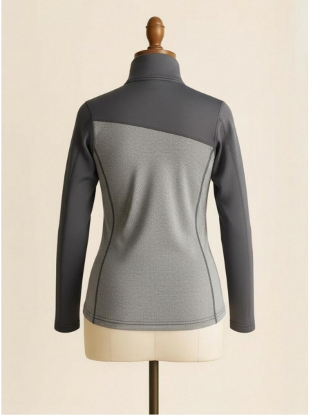 The AlpineBlend Women’s Technical Stretch Jacket is designed to combine comfort, structure, and performance for active outdoor use. Featuring a hybrid fabric construction, it balances warmth and breathability while maintaining excellent flexibility during movement. The full-zip front and raised collar provide adjustable coverage in cool conditions, while the ergonomic panel design enhances fit and mobility. Practical zip pockets and a functional sleeve pocket add convenient storage for small items. With its modern two-tone styling and streamlined silhouette, this jacket works well for hiking, travel, and everyday outdoor adventures.